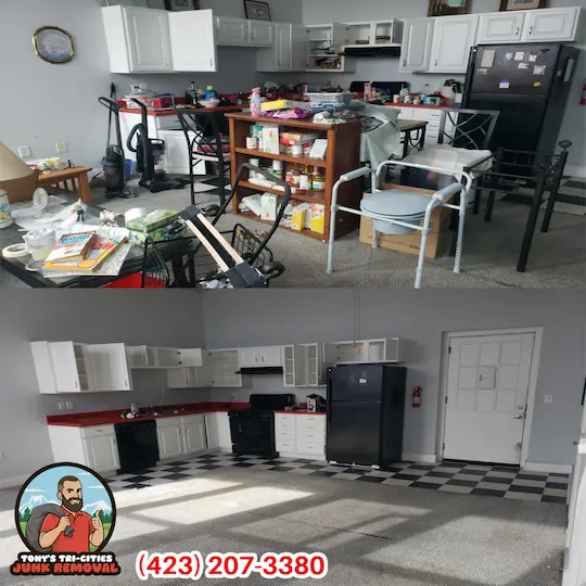 This Bristol, TN Apartment unit cleanout was done at a aged 55+ senior living facility in the Bristol Tennessee area, not too far from the Hard Rock Casino. We cleared this rental unit the very next day so the property manager could efficiently get a new tenant in.