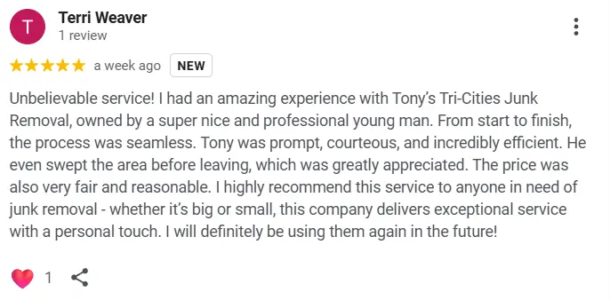 Watch Tony’s Tri-Cities Junk Removal in action.